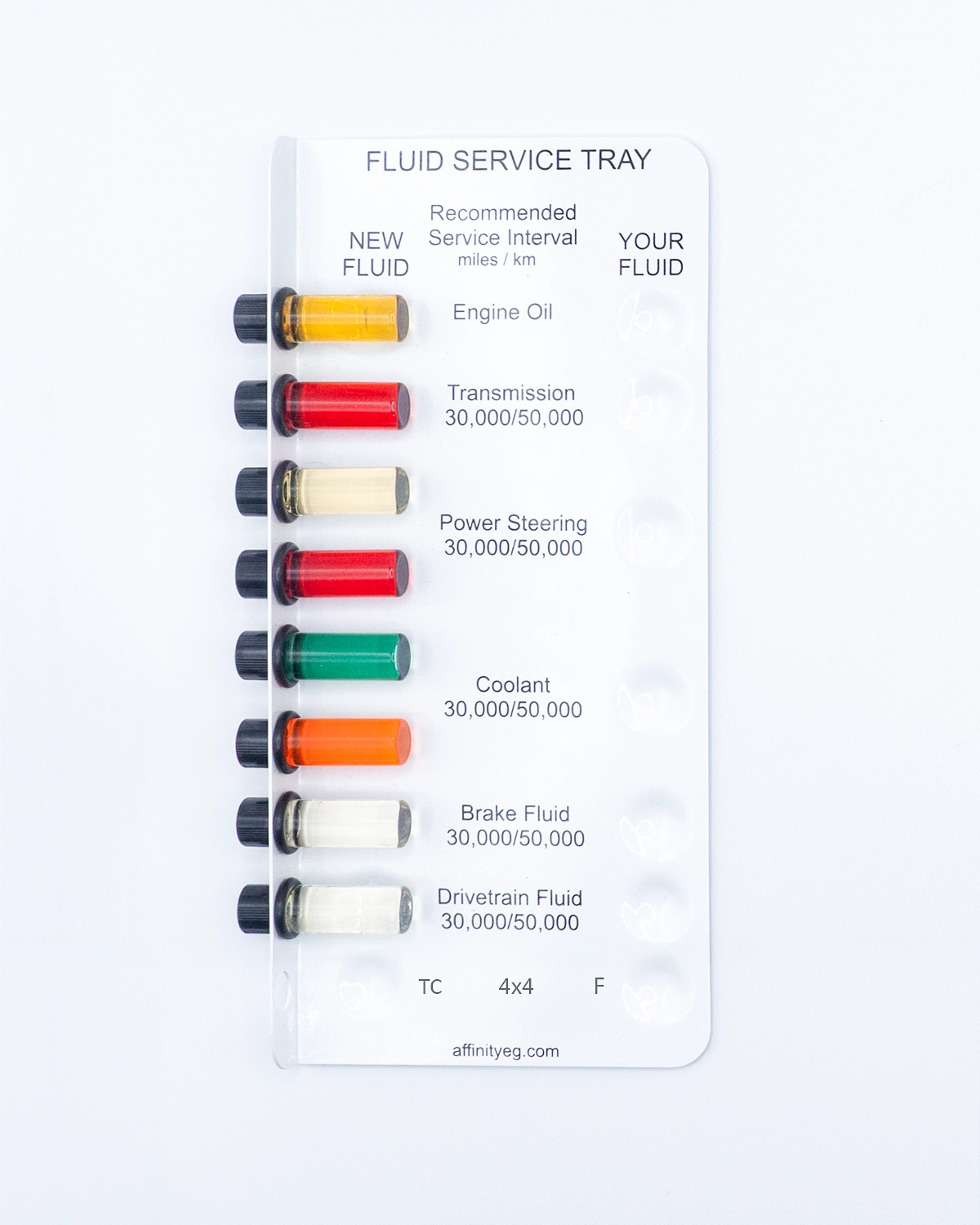 - Coolant or brake fluid test strips can easily be laid on the tray for display with the fluid samples.