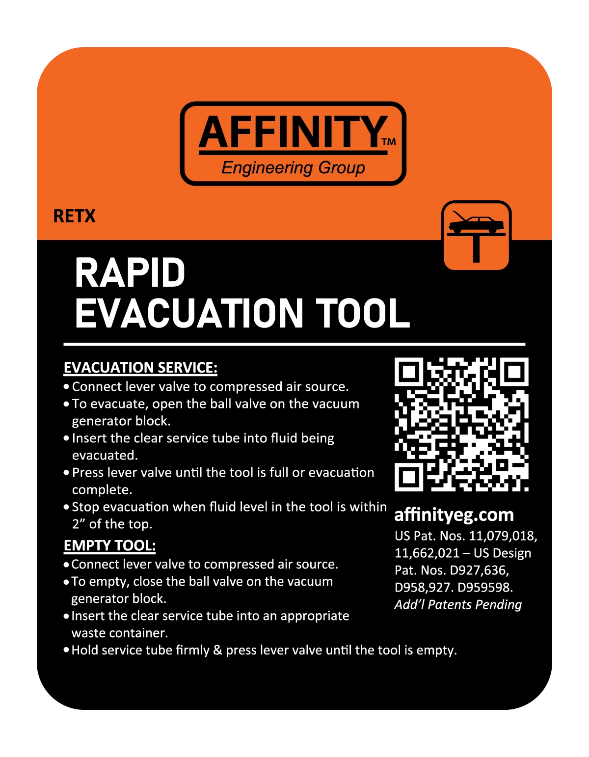 - Fluid can be drawn in with suction, rotate ball valve and pressure to evacuate the tool